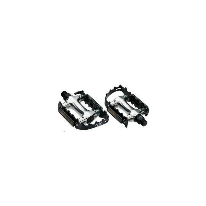 Pédales VTT bénéficiant d’un corps et cage en alu forgé à froid pour un gain de poids et plus de robustesse. Fourni avec deux réflecteurs intégrés pour plus de sécurité.
